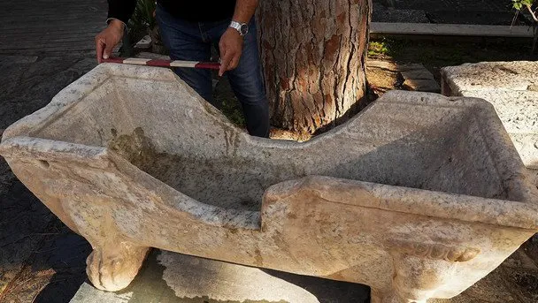 Під час чергового етапу розкопок дослідники натрапили на велику мармурову ванну завдовжки близько півтора метра. Вона виготовлена з рідкісного мармуру Greco Scritto, який вирізняється темними природними прожилками і в античні часи вважався матеріалом для заможних клієнтів.