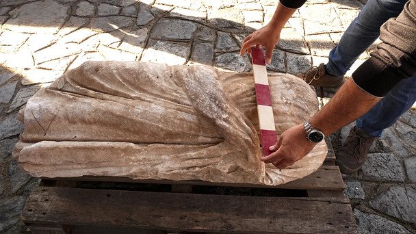 Не менш несподіваною стала інша знахідка — фрагмент чоловічої статуї, створеної на межі I століття до н. е. та I століття н. е. Після руйнування скульптури її торс використали як елемент дорожнього покриття. Археологи виявили його перевернутим обличчям донизу просто в стародавній бруківці неподалік Стадіону.
