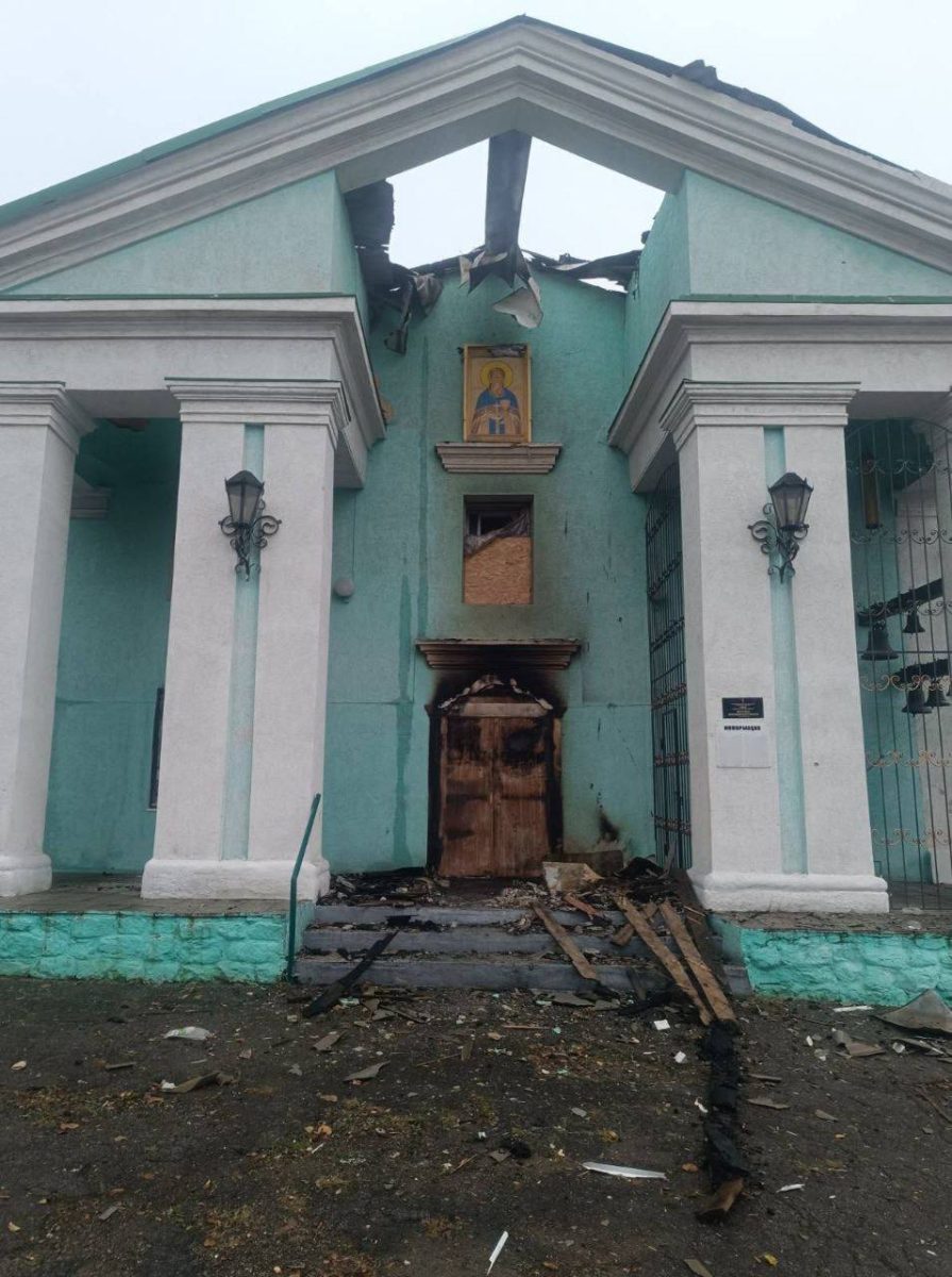 У Мирнограді було пряме влучання в головний купол храму в ім’я мученика Віктора Халкідонського. Пошкоджено покрівлю та частину стін, також зруйновані господарські будівлі при храмі, пише uoc-news.church.