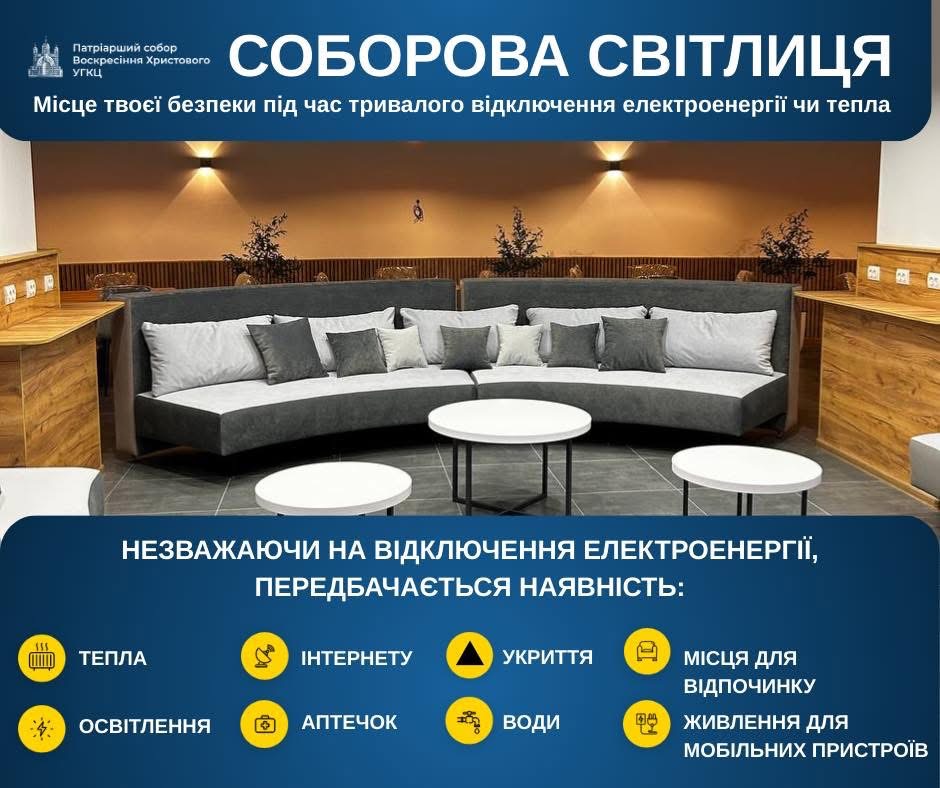 У приміщенні Соборової Світлиці, яка діє в укритті храму кожен охочий може зігрітися, скористатися електроенергією, попрацювати або навчатися в тихій і безпечній атмосфері. Цей простір створено як місце людської підтримки, взаємної присутності та внутрішнього відновлення, особливо в час енергетичних викликів.