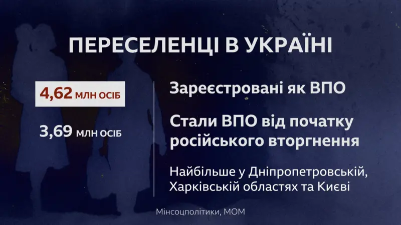 За даними міністерства соціальної політики, після майже чотирьох років від початку повномасштабної війни в Україні офіційно зареєстровано 4,62 млн внутрішньо переміщених осіб, із яких 3,8 – це дорослі. Із них 2,76 млн – жінки, 1,86 млн – чоловіки.